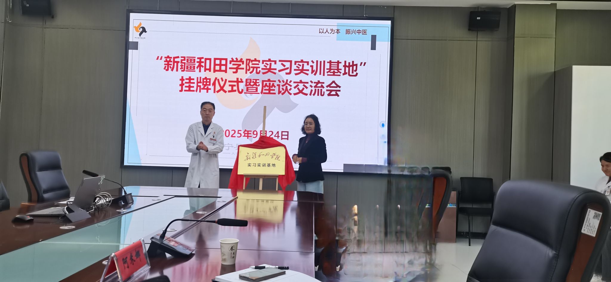 在实习基地挂牌仪式上,各医院领导与药学院工作组共同为 “新疆和田学院实习基地”揭牌。自治区维吾尔医医院院长买买提·艾力在致辞中表示,作为区域内重点医疗机构,医院始终重视与高校的合作,此次挂牌标志着双方在人才联合培养上迈入新阶段,医院将充分发挥临床资源优势,为实习生提供优质的实践教学环境与指导;药学院木艾塔尔·努尔麦麦提则代表新疆和田学院感谢各医院长期以来对实习工作的支持,强调实习基地是连接课堂理论与临床实践的关键纽带,希望通过校院协同,共同培养出符合行业需求的高素质医学专业人才。