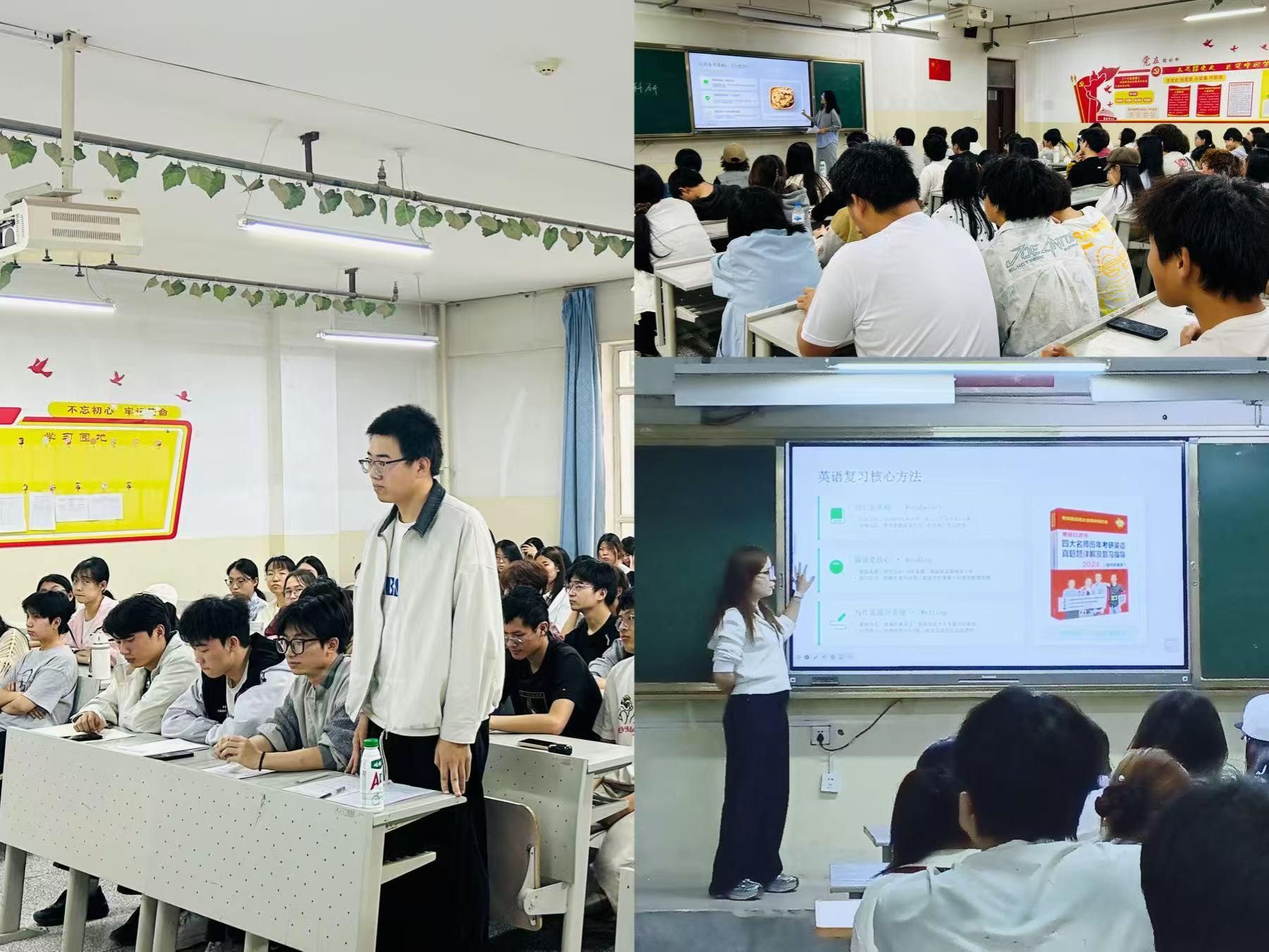 在考研整体规划部分,分享会针对大一新生的“黄金准备期”,提出了明确方向、攻克英语、参与科研竞赛等针对性建议;同时梳理了以大三备考为例的通用考研时间轴,将备考划分为基础夯实期、强化提升期、真题模拟期、冲刺备考期四个阶段,明确各阶段核心任务与重点关注内容,为同学们提供了清晰的备考时间线。